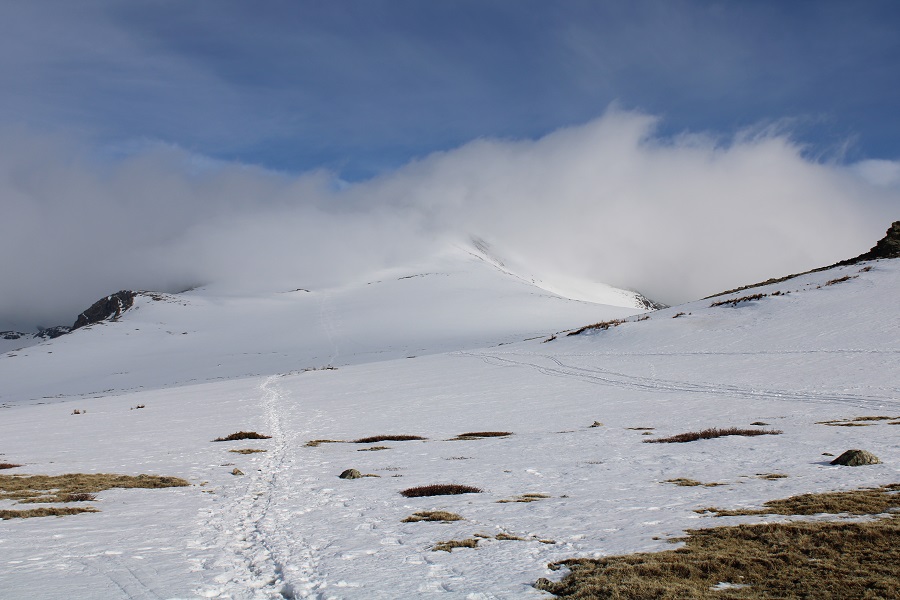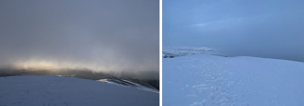 I was surprised at how fast the clouds were coming in: The wind was stronger here on the summit, and soon I lost most visibility.