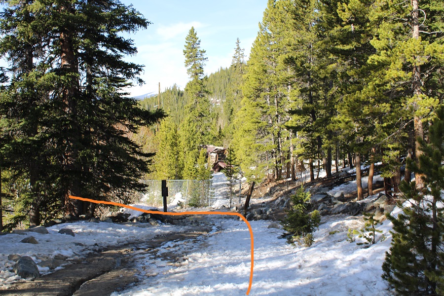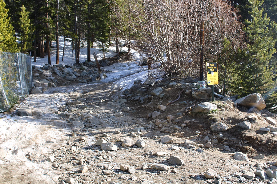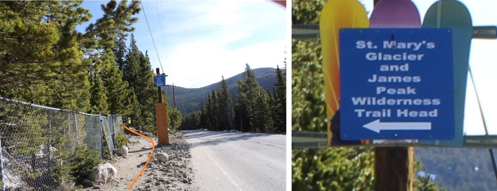 There was a sign near the bridge. I’m guessing it said “St Marys Glacier” or “James Peak Trail”, or something like that, but it was covered in stickers and useless. I thought to myself I should have brought some 14er Fireside Stickers. Oh well, I’ll be back to make this a ridge hike, or at a minimum get some 12ers in the area: I’ll bring stickers then.