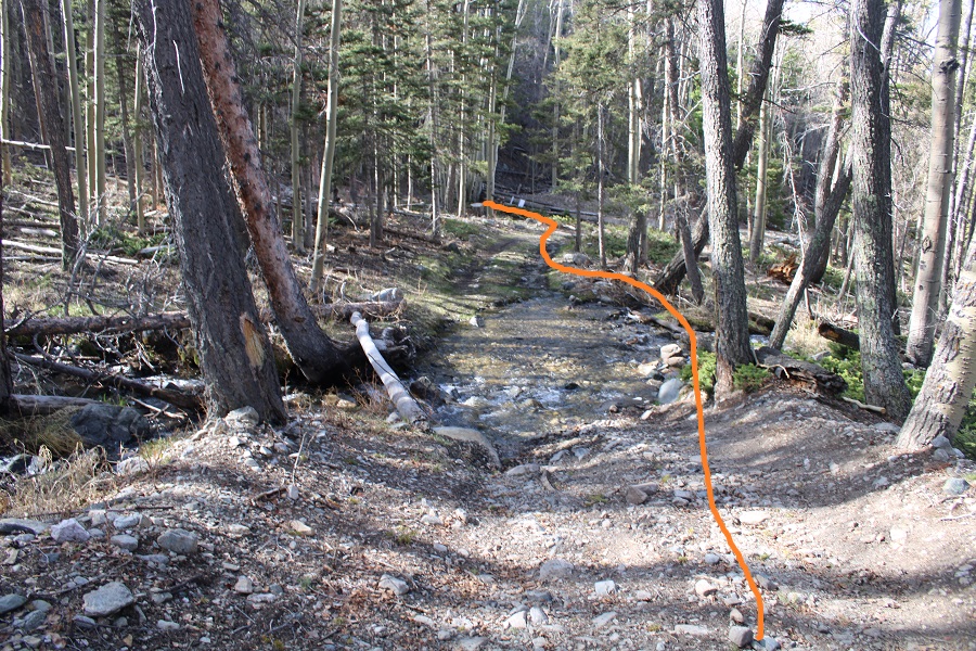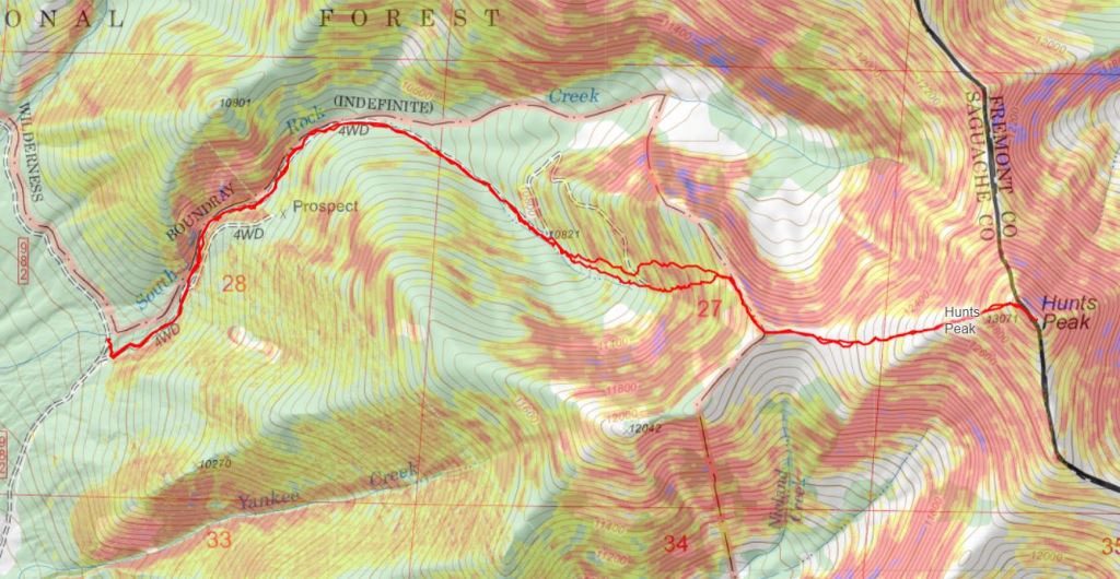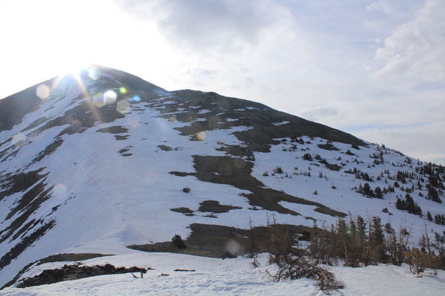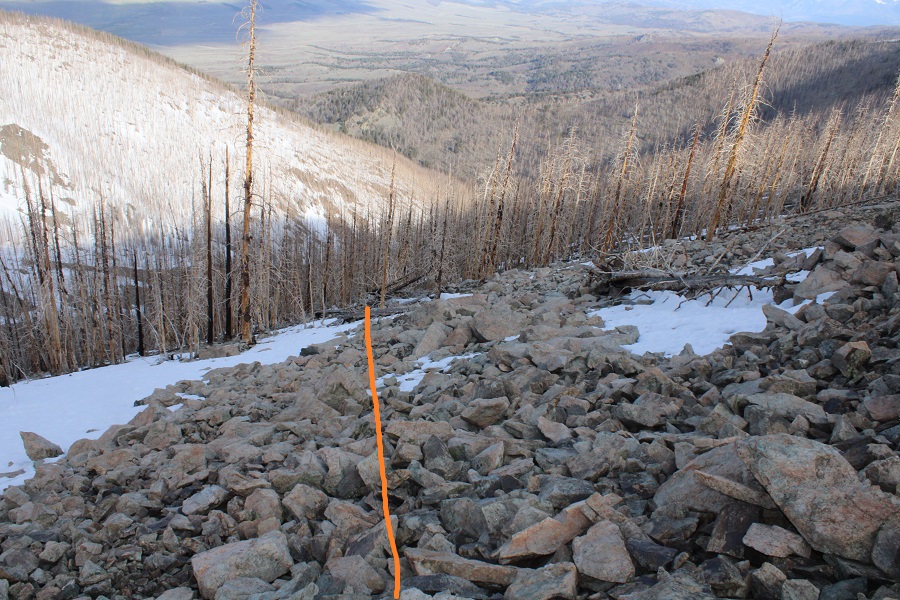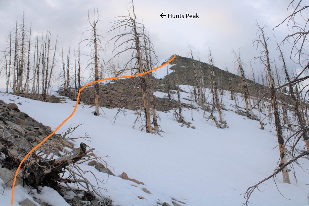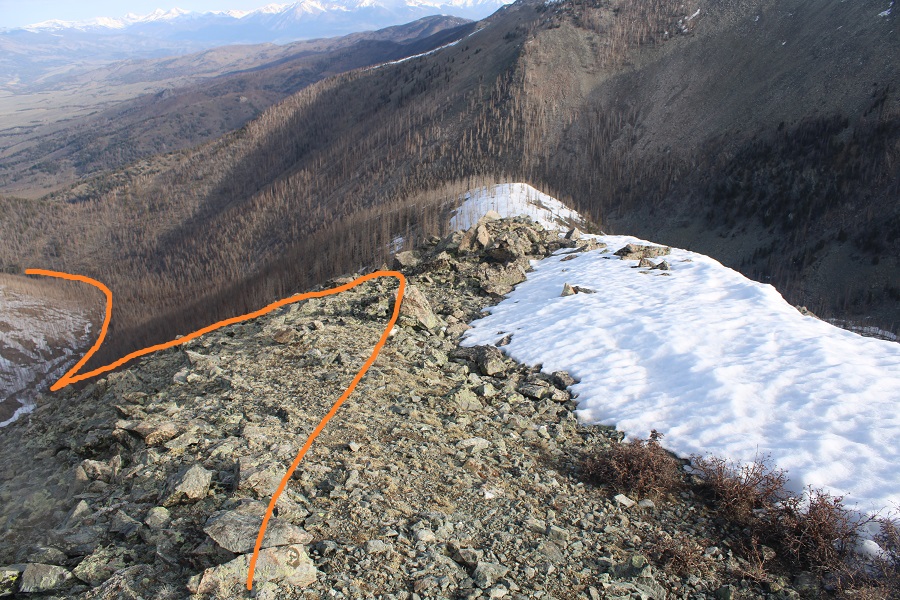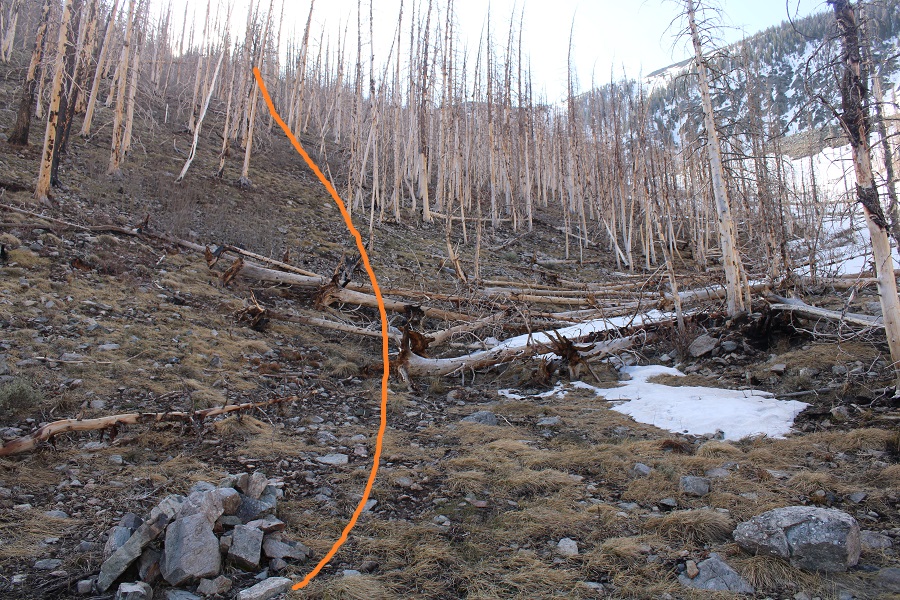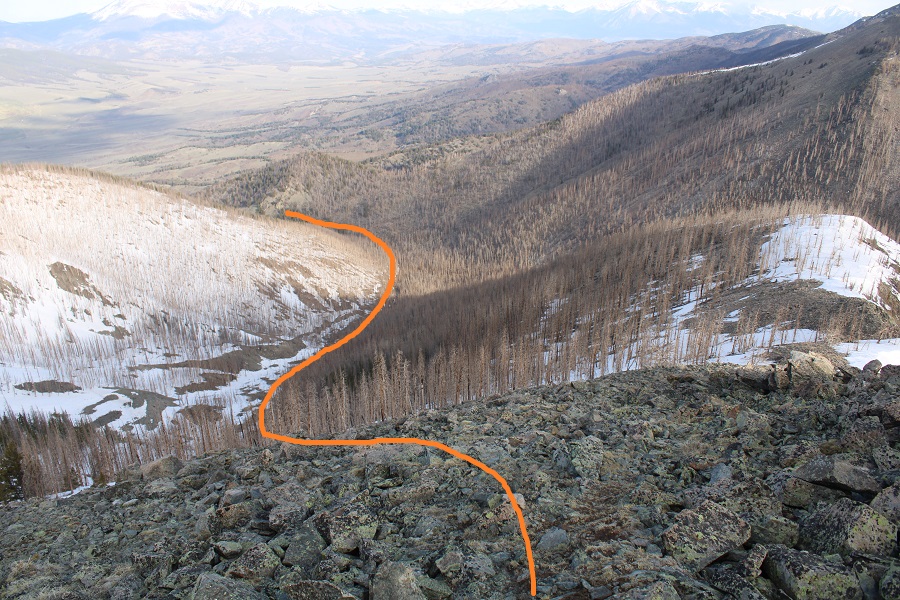 Eventually the ‘road’ fizzled out. I followed the contour of South Rock Creek and then the mountainside as it headed east. In the daylight the route to the ridge is easy to see