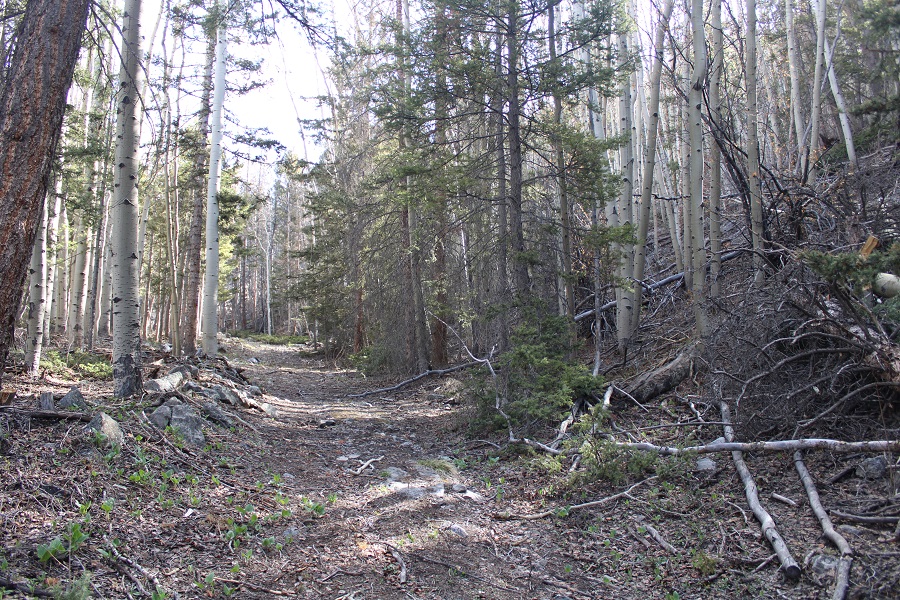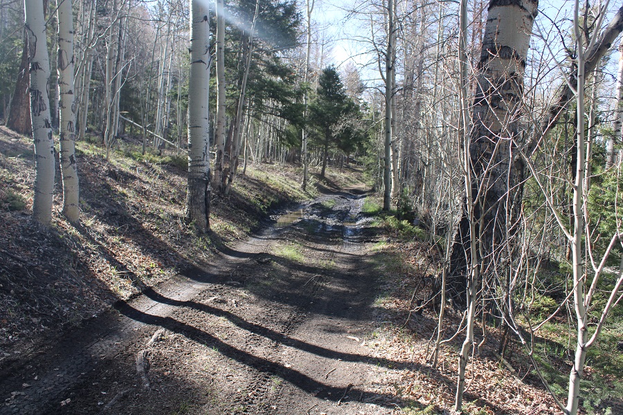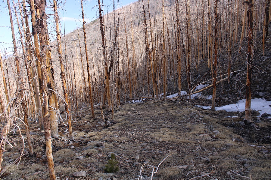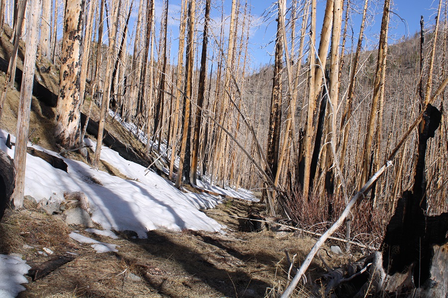 It was obvious this road hasn’t been used by vehicles since the fire, because there were downed trees all over the road. There was a little bit of snow as well, but totally manageable without traction.