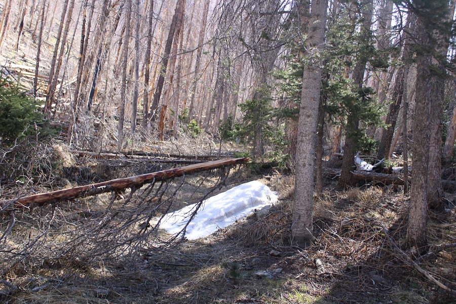 Here was where I encountered the most snow of the day. It was mostly consolidated, with the odd postholing up to my thigh