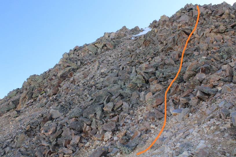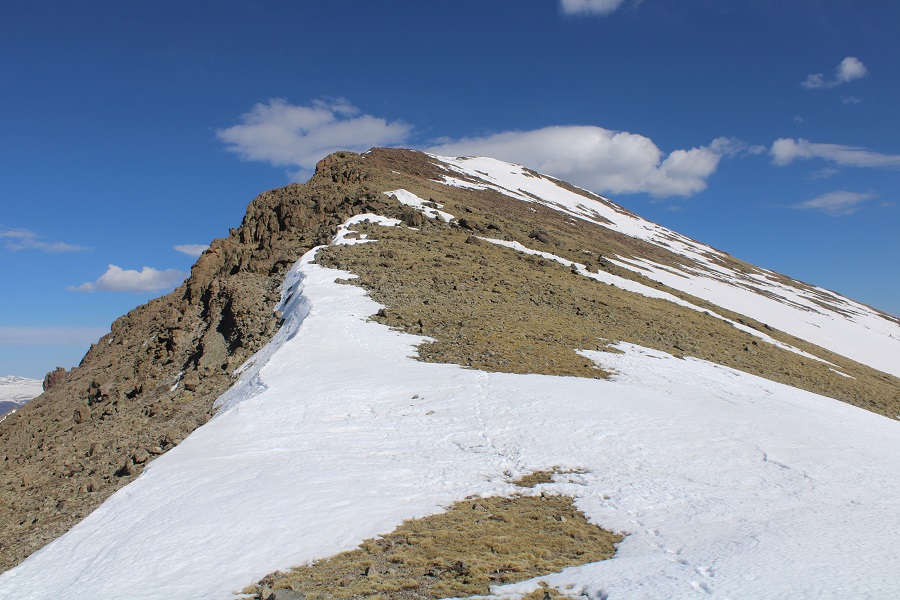 I made it to the saddle and the rocky area looked climbable.  It didn’t get any harder than difficult class 2.  The gullies in this area were either snow free, or the snow was avoidable. I stuck to the ridge, dipping to the left (west) when necessary.