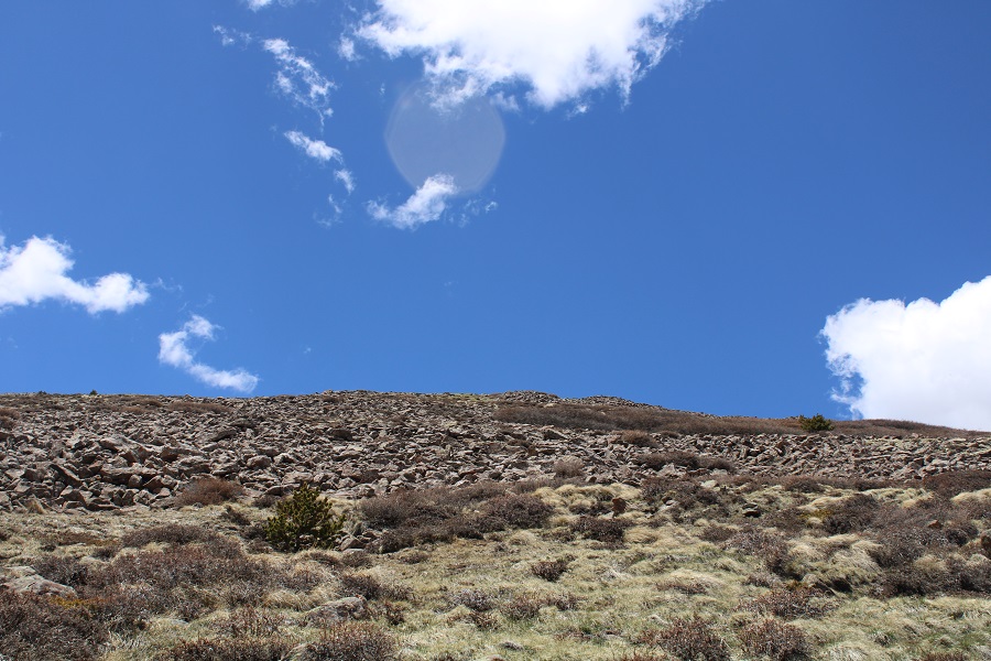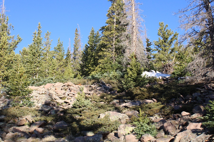 It took me 2.75 miles, and 2000’ of elevation gain to make it to treeline.  It was here I experienced the worst and most extensive bushwhacking I’ve ever encountered.  It was like hiking up through avalanche debris (although it was obvious the wind had knocked the trees down).  The ridge was either dense with new growth, or a jungle gym of downed trees.  I would not recommend this route, and I told myself I’d take Texas Creek on the way down (note:  I later realized I would not recommend the Texas Creek route either).  There was a small but raging creek to ford early on, and then it was straight up the ridge.