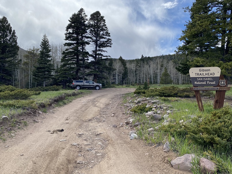 I drove to the Gibson Creek trailhead the night before, concerned I wasn’t going to get a spot to park on Memorial Day weekend.  Imagine my surprise when I was the only one there.  Two more vehicles would join me later, but I was genuinely amazed the trailhead wasn’t more crowded: there’s great dispersed camping here.