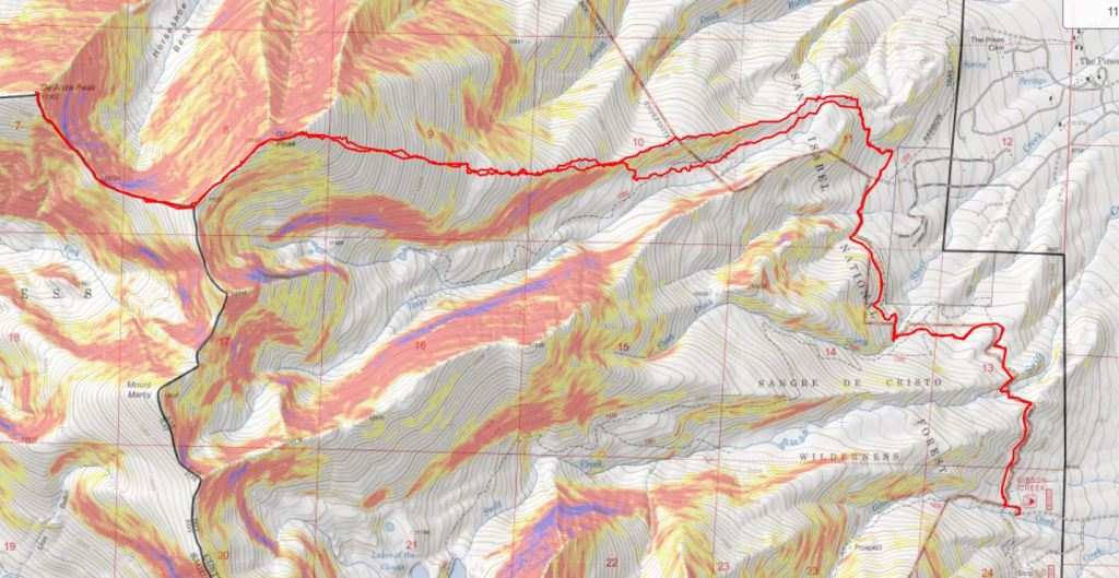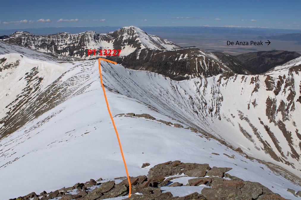 In order to get to De Anza Peak I had to head southwest to point 13227, and then northwest to the summit of De Anza.