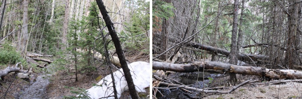 Eventually the trail became a bit more distinct, although still covered in water and downed trees.  Just know if you’re following the creek east, you’re going in the right direction.