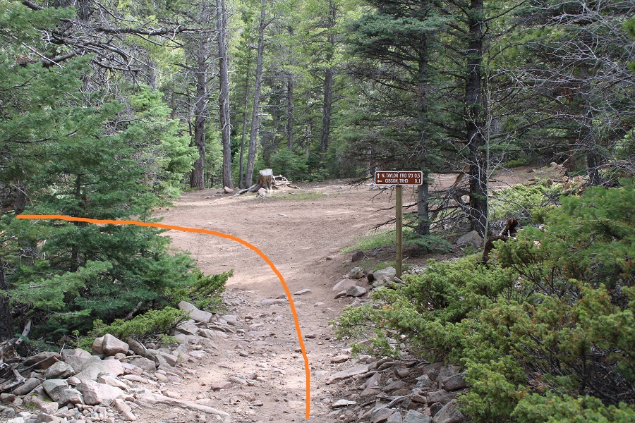 The trail starts at the north end of the parking area, and heads west for .1 miles before turning right and following Rainbow Trail 1336 north.