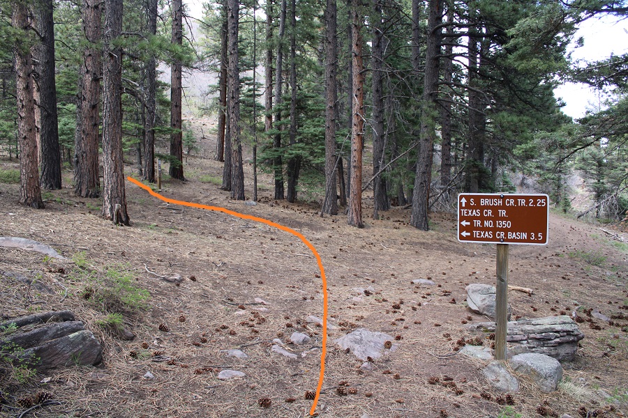 After 3.25 miles I came to a junction, and took Trail No. 1350 left (west) towards Texas Creek Basin. This is where my flashlight went out and I was glad the sun was starting to rise.