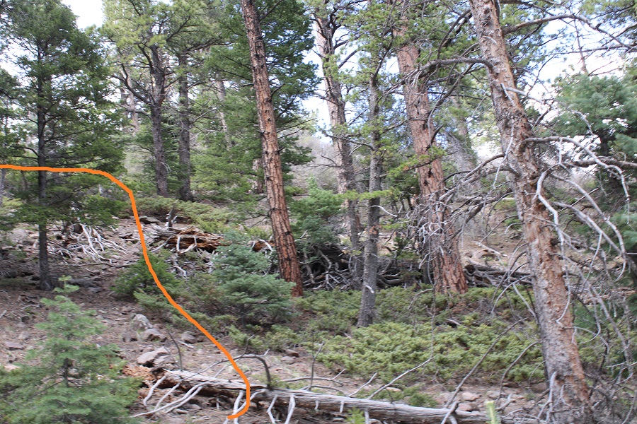 Note:  Trail 1350 is not a maintained trail.  I was hiking it in the dark at this point, and there were so many downed trees I kept getting off route trying to go around them (going over them wasn’t always practical).  It wasn’t much better in the daylight.  I decided to gain the ridge as quickly as I could, and follow it west to treeline.