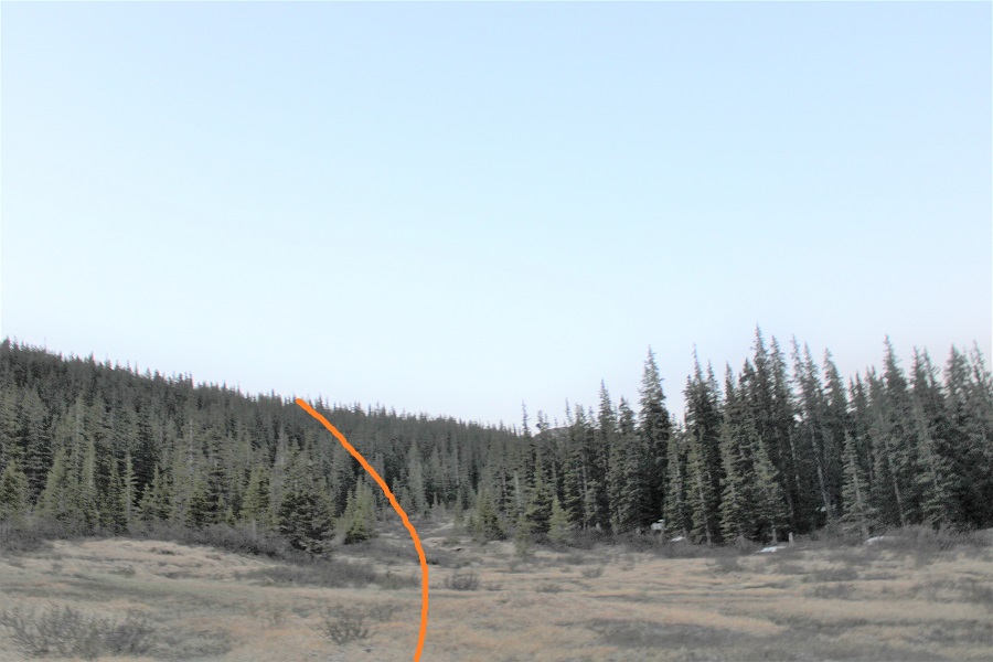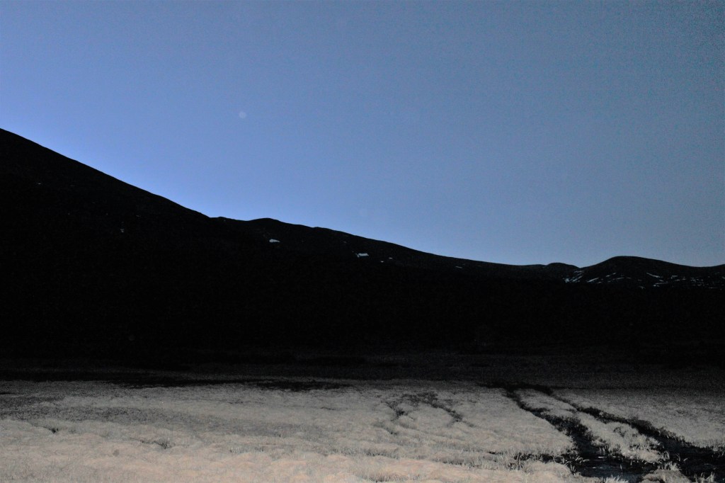 There was a sign indicating a trail that intersected the road at 11045’.  It showed there was a trail heading southeast, and indeed, in the dark it looked like there was a trail.  I knew I wanted to head this way, so I started following the ‘trail’.