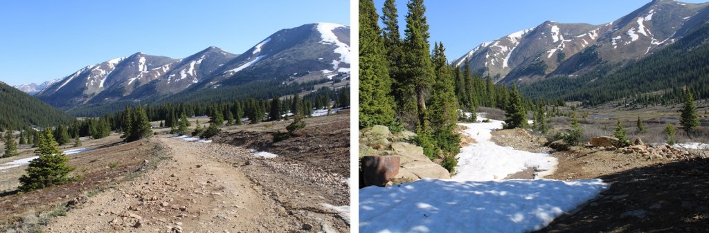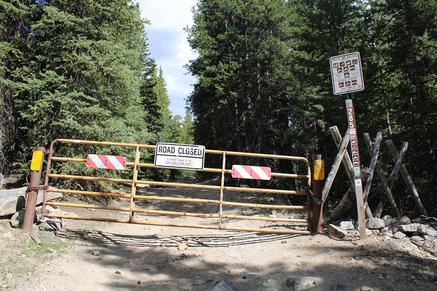 I was able to drive the .7 miles to the gate, but when I got there the gate was closed.  Had it been open, I would have been able to drive all the way to 11000’.  It was closed to allow for spring runoff (I’d find the next day it’s going to be a while before it opens:  Webster Pass is still socked in and the 4WD roads have several feet of snow in some areas).