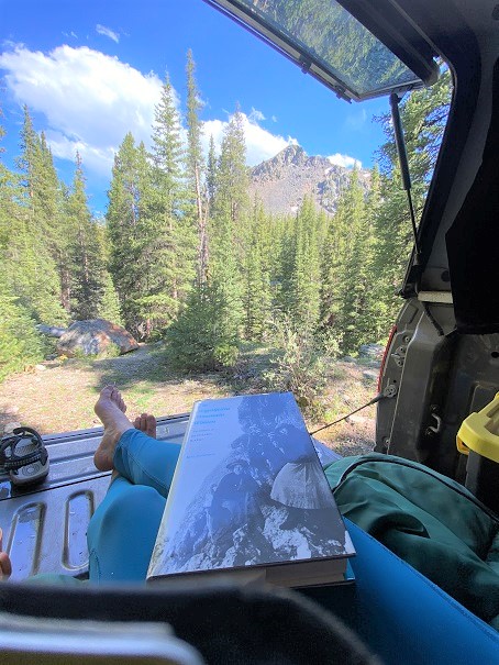 After exploring, I went back to my truck, made dinner, sipped some whiskey, and started reading a book I bought at a used bookstore in Arizona:  The Magnificent Mountain Women, Adventures in the Colorado Rockies by Janet Robertson (1990).  It’s about all the first women to summit various Colorado Mountains, mostly 14ers.  While I only made it about 50 pages in that night, so far it’s a great book, with a lot of good points and tons of background information on the lives of these women and their ascents.  Added bonus:  it includes pictures.