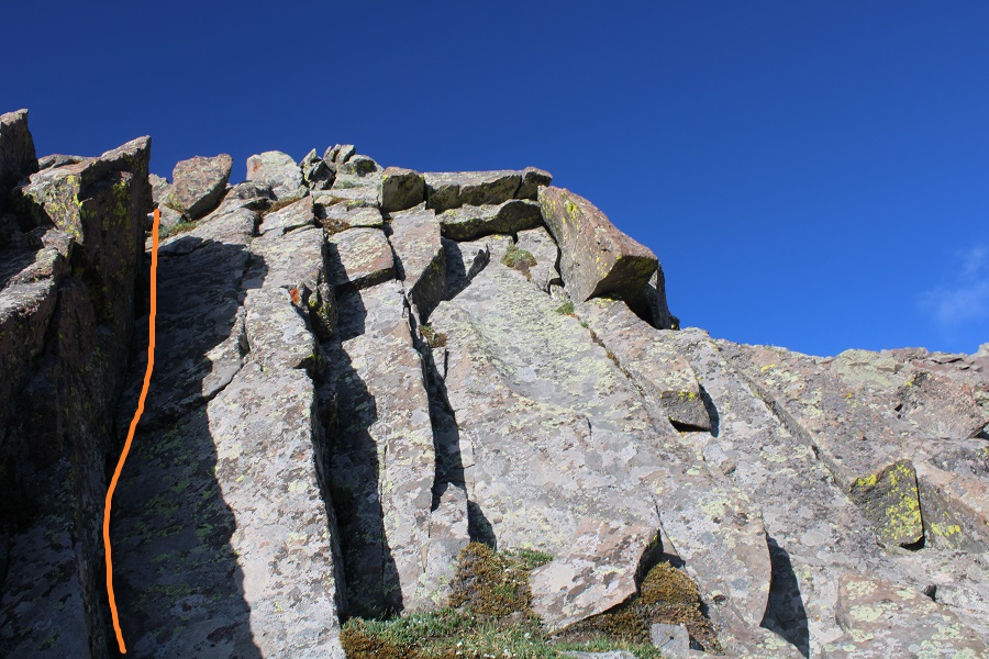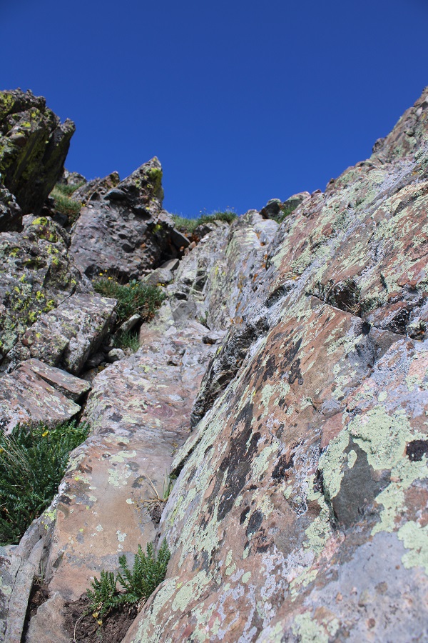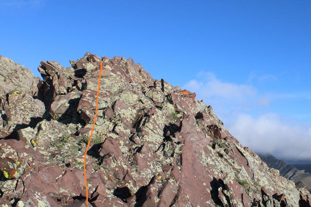 There’s a section of rock to upclimb. This was difficult class 3 / easy class 4 (and much more difficult and committing on the way back down later in the day).