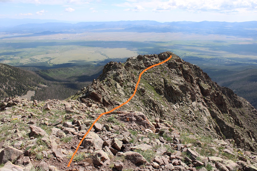 After the chimney, it’s straightforward class 2 to the top of the ridge to the first false summit.
