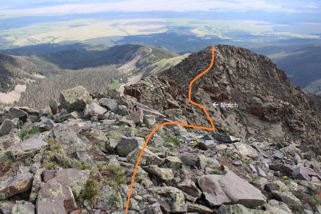Then you’ll dip down to the right. Look for a notch, go through it, and now you’re on the left side of the ridge.