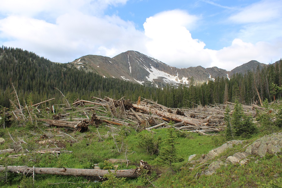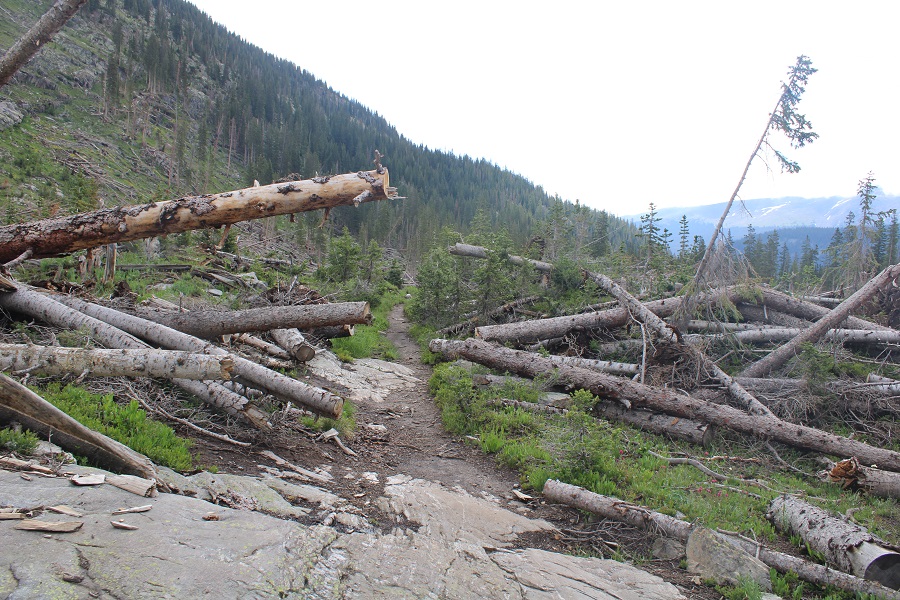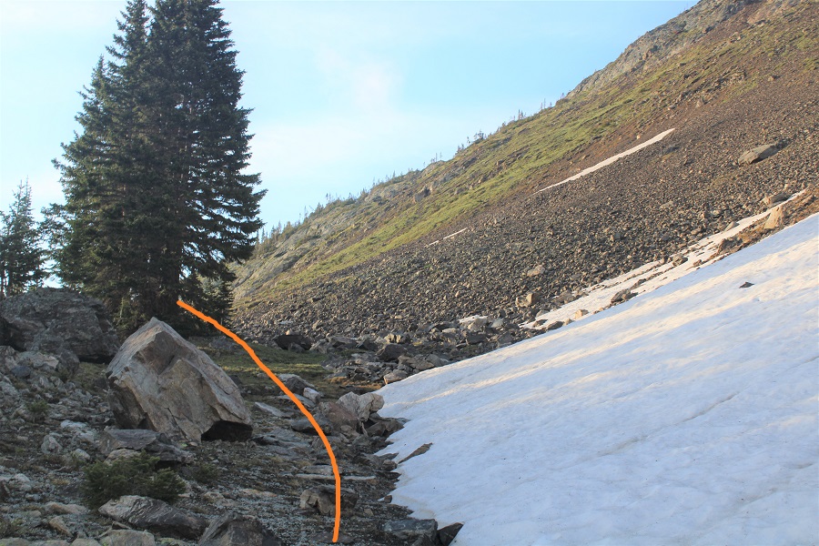I followed the trail west.  At about 11,000’ I came upon avalanche debris.  The trail was well maintained and easy to follow through the debris.