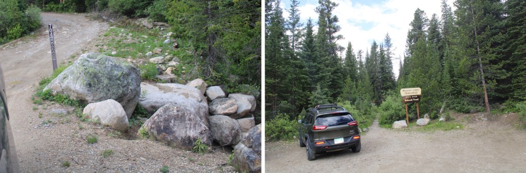 The storms this week have put a damper on my hiking plans.  Most of the peaks on my immediate goal list are too long to complete before the storms hit, so when I saw the weather was good near Savage Peak I jumped on the chance to get in a quick weekday summit. I drove past the Missouri Lakes trailhead and drove the 4WD road to the stream crossing. I didn’t need to put my truck into 4WD (which was good, because it’s still not working).  There were some large puddles to splash through on the way in.