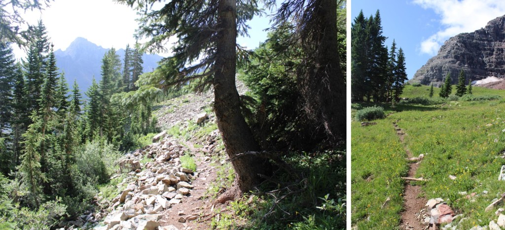 The trail starts by skirting Maroon Lake, then taking the Crater Lake trail southwest.