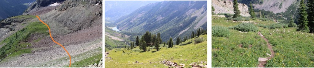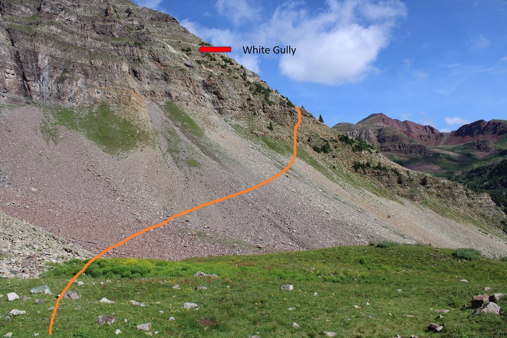 Here are some step by step photos of the way I accessed the white gully: I followed the North Maroon Trail to treeline