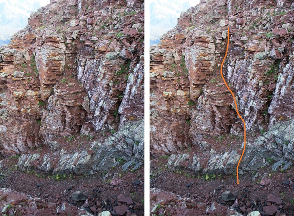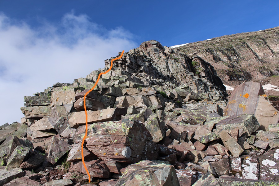 Here’s exactly where I entered and exited the ridge. I found this to be class 2 and direct access. Now’s a great time to put on your helmet if you haven’t already done so.