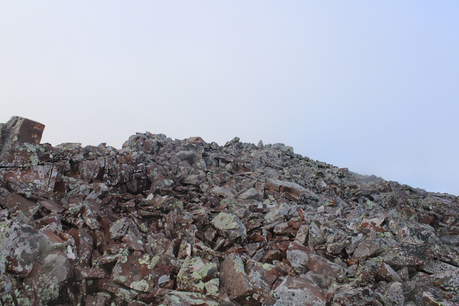 Since the weather wasn’t cooperating I didn’t stay long. I turned and headed back the way I’d hiked in. Here’s looking back at the false summit / ‘the crown’