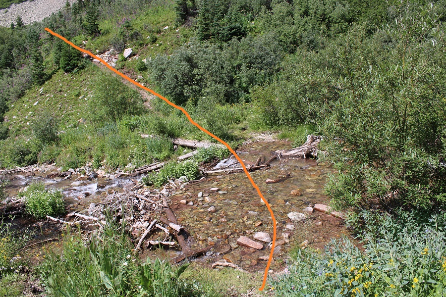 The trail continues to be a well defined, class 1 trail. At about 10775’ there’s another junction. If you’ve hiked North Maroon Peak before, you’ll recognize this trail. I turned left here and crossed the creek, following the North Maroon Peak Trail (still class 1)