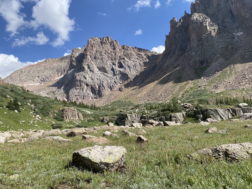 Pick your place to camp. There’s always plenty of water here flowing through the basin. The marmots will chew up anything not hung up, which is difficult in this treeless basin. I’ve seen Mountain Goats and Moose here a few times. This is a great starting place for several 13ers in the area. If you’d like my GPX file for the route send me an email wild.wanderer@aol.com