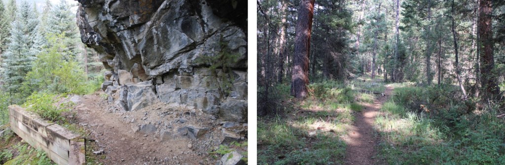 And from the creek to the Animas River. Here the trail will gain and lose elevation multiple times before descending to the river. In the late summer and early fall you’ll find wild blueberries, raspberries, strawberries, and lots of foliage here.