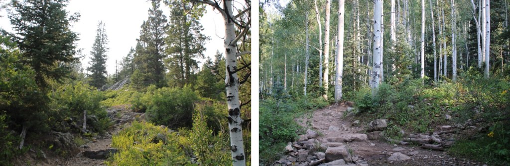 You’ll follow this trail for just under half a mile until you get to an Aspen Grove. This is a good place to spend the night before the elevation gain begins. You’ll have hiked a total of (almost) 12 miles to this point.