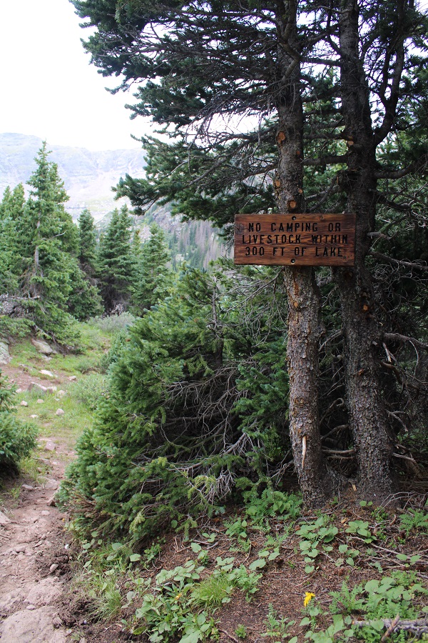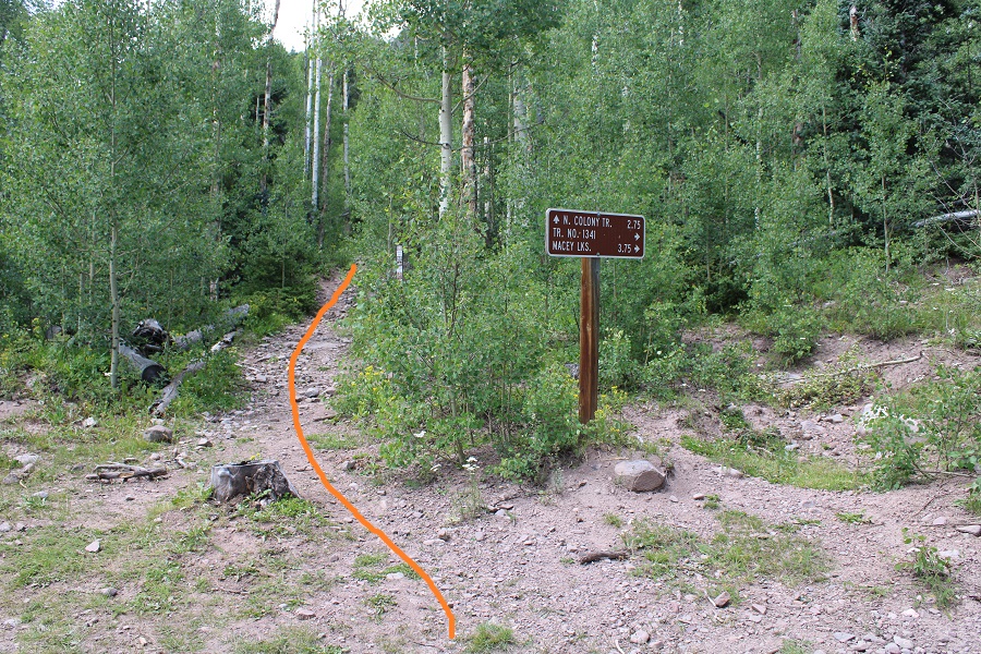 Just after Macey Falls, and just before making it to the first Macey Lake, I left the trail and headed northwest. I’d hiked 6.5 miles total to this point. I’m guessing this is a camping area, because I left the trail at this marker (seen on the right side of the trail).