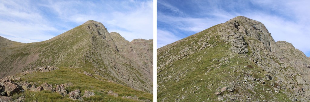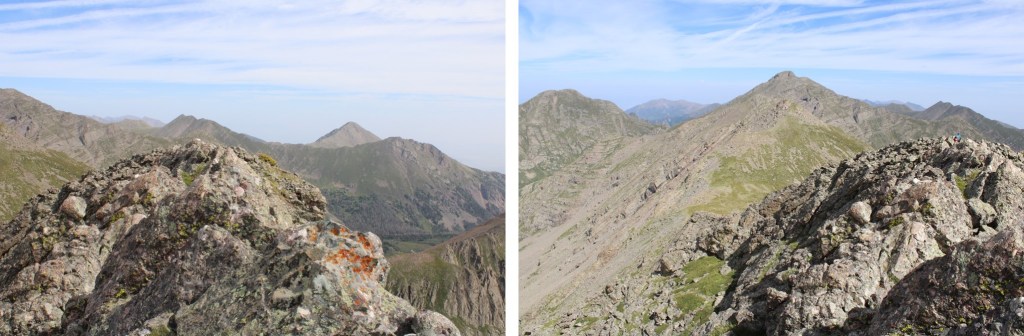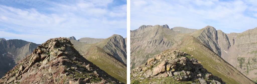 The ridge has a lot of ups and downs. I crossed over two small bumps (kind of like ears), then lost 150’ of elevation and gained it again to the true summit of Little Baldy Mountain. This is the best way to describe where Little Baldy Mountain is (an unranked 12er). There is a cairn on the first hump, but it’s the second cairn you’re looking for (if it really even matters? It is unranked. Just follow the ridge and you’ll hit it).