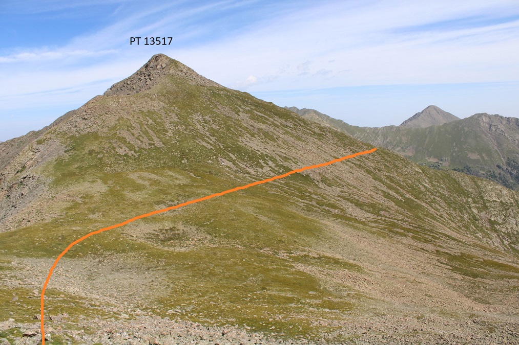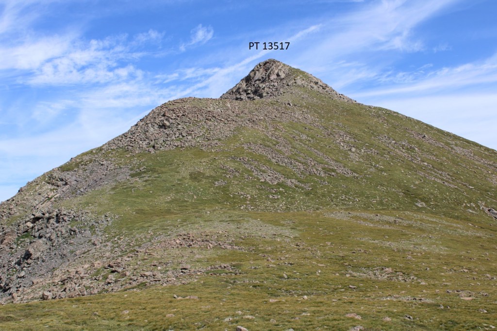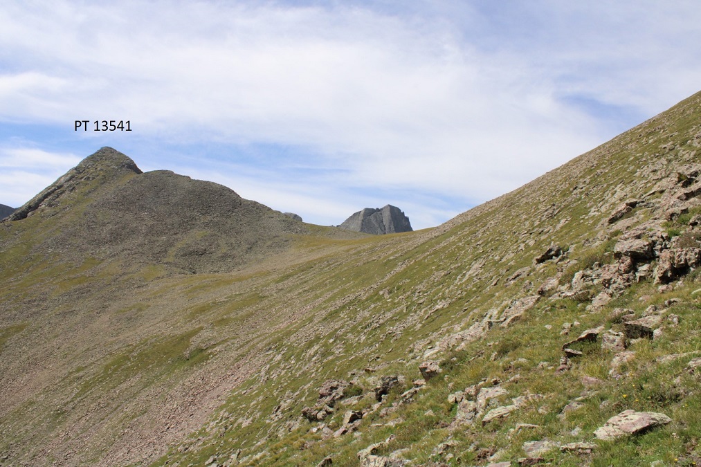 The ridge is a bit rocky, with some tundra thrown in, and all class 2. Here you can see the route to PT 13517 and 13541