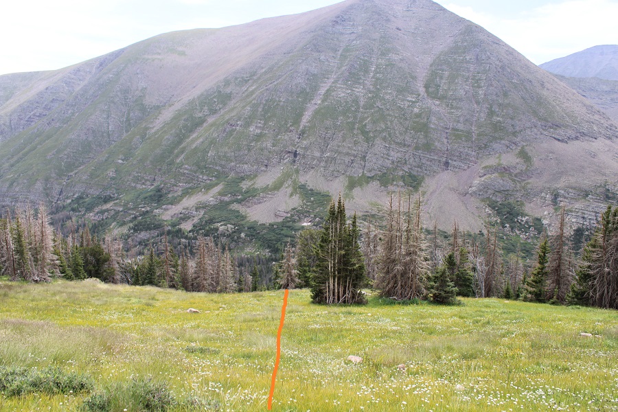 It was a really nice day, so I enjoyed my time here for a while. I took a ton of fun photos, and did some visual research for another peak I still need to figure out how to climb in the area (next week???). When it was time to head back, I made my way back to the 13517/13541 saddle the way I’d come, then traversed over to the 13517/Little Baldy Mountain saddle. This was all class 2 on tundra and talus