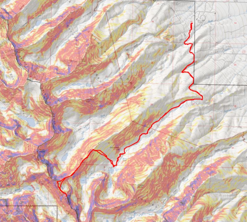 Here’s an overview of the route I took. I summited PT 13517 first, then took the ridge to PT 13541, and then went saddle to saddle.