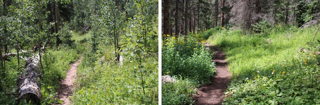 And then hiking up through grasses, flowers, and trees. The elevation gain was moderate and I never came across a large obstacle (cliff, water, drainage, huge boulder, etc.)