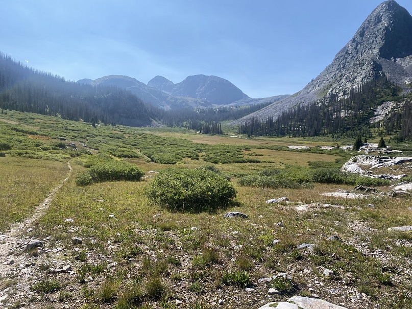 As he trotted away I breathed a sigh of relief, and continued on the trail, exiting the basin and making my way to Rock Lake.