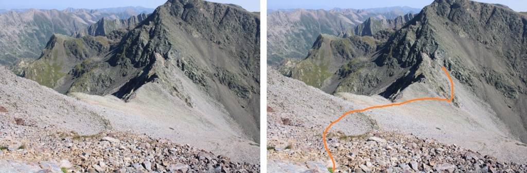 There’s a little bit of scrambling to get over the rock band. I was able to keep it as easy class 3 by taking this route