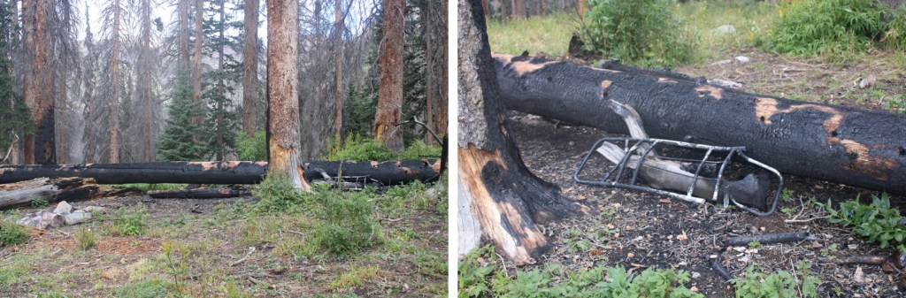 I saw evidence of someone’s fire getting out of control: looks like they lost their pack in the process.   I wonder how they put it out?  In case you’re wondering, yes, the ground was cold and the fire was out (I’m sure the 15 hours of rain last night had helped).