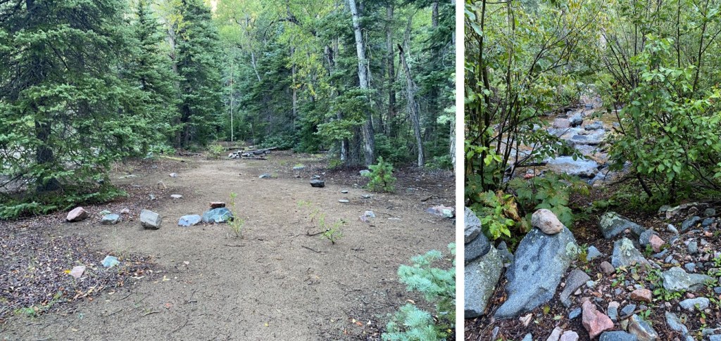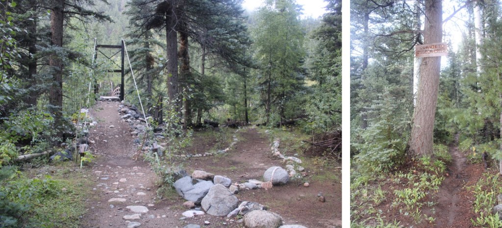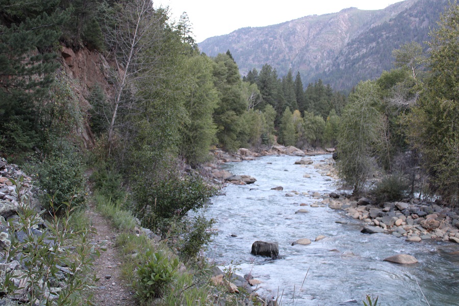I started this day at the Purgatory Creek Trailhead around 3pm, but will start this report from the Needleton Train Stop. Oh, and it rained the entire first day. The. Entire. Day. I had on rain gear, but was soaked, and my camera lens fogged up. I was so glad to have on new hiking shoes that were still waterproof. From the Needleton Train stop, I followed the Animas River on somewhat of a trail. This trail starts out going through private property (it’s private all the way to Pigeon Creek), so please stay on trail.
