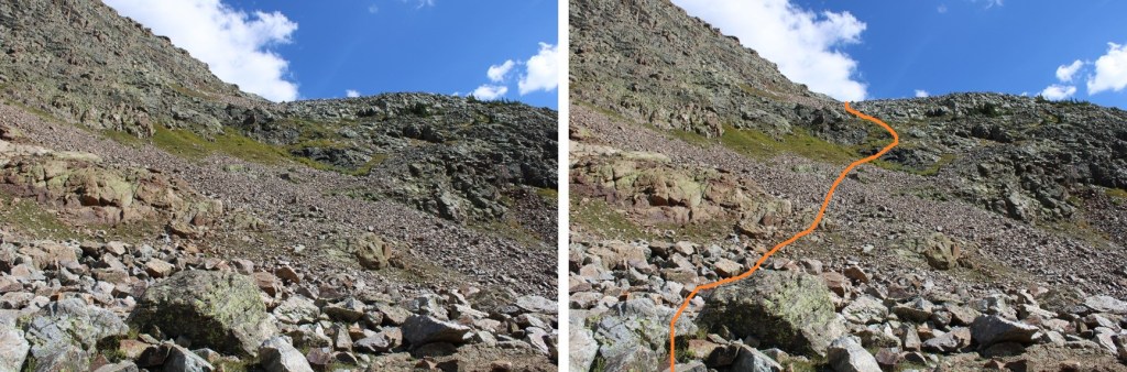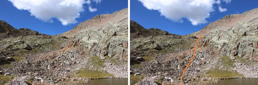 OK, enough on that rant. Here are some close-up pictures of the route to the lake at 12522’