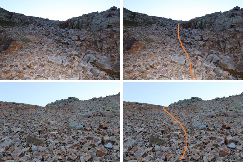 If you have a GPX file that says to go further around the rock outcroppings, know it’s drawn in (although, to be fair, there is a way to go from the Jagged Mountain route, but that’s now what happened here). I had more than one GPX file that said to follow the outcropping and then ascend to the north, but when I attempted it, I was wearing a full pack and it was more than class 4: this should be a class 2 hike, which leads me to believe someone hand copied someone else’s hand copy, which isn’t cool (that’s the only reason I’m addressing it here; because I had more than one similar file. Go with your gut instinct and follow the obvious rock gully… you’ll even come across some cairns).