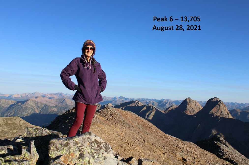 Once on the small saddle I could see Peak 5, and was a little apprehensive: that looked more than class 3. I dropped my gear, put on my helmet, and made my way over, only to find it’s an easy class 2 hike from the west side. I re-gathered my gear, and made my way over to the summit.