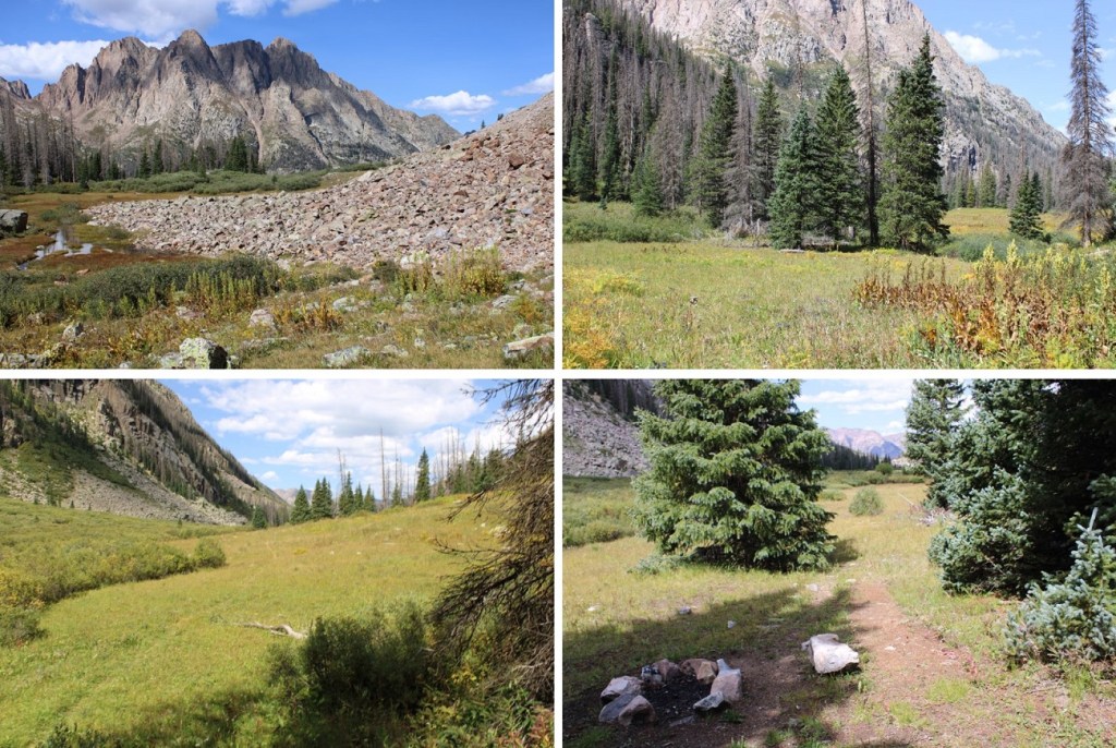 The trail here wasn’t too bad when compared to the past 3 miles. There is a slightly defined trail into the basin. The only difficult part here are all the fallen trees. Many don’t yet have a workaround, and they’re annoying. You can still see a pretty good trail though.