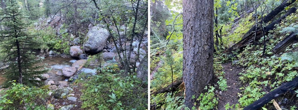 I crossed a second, new mudslide runout area, placed some cairns, and continued along the trail
