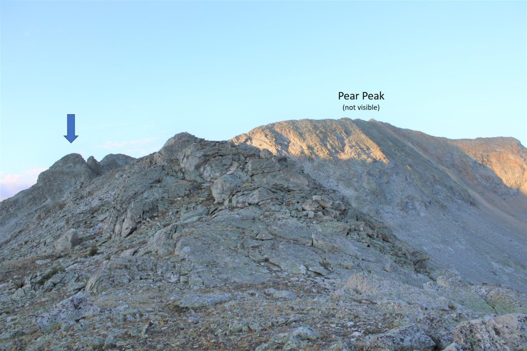 If I ever felt the need to dip off the ridge, I went left.  Pear Peak is actually to the left, past the false summit (which isn’t really a false summit because you can see the true summit most of the time)