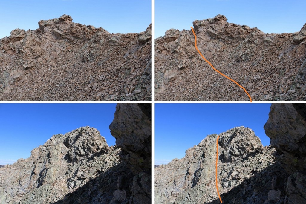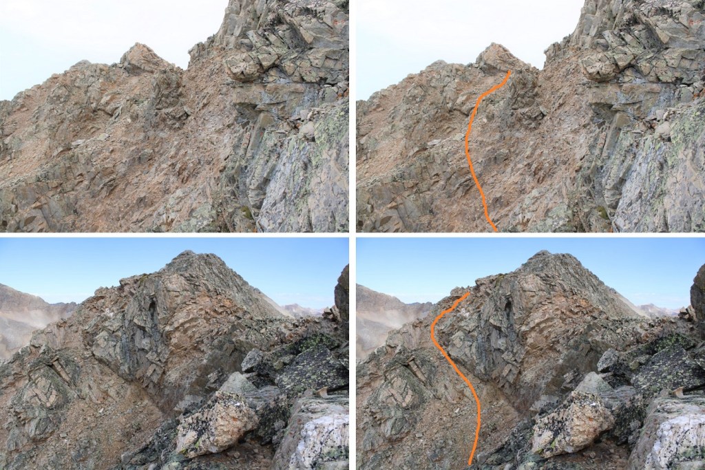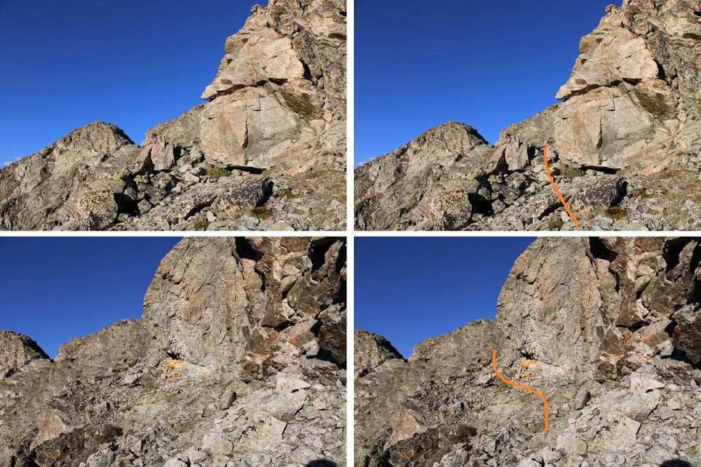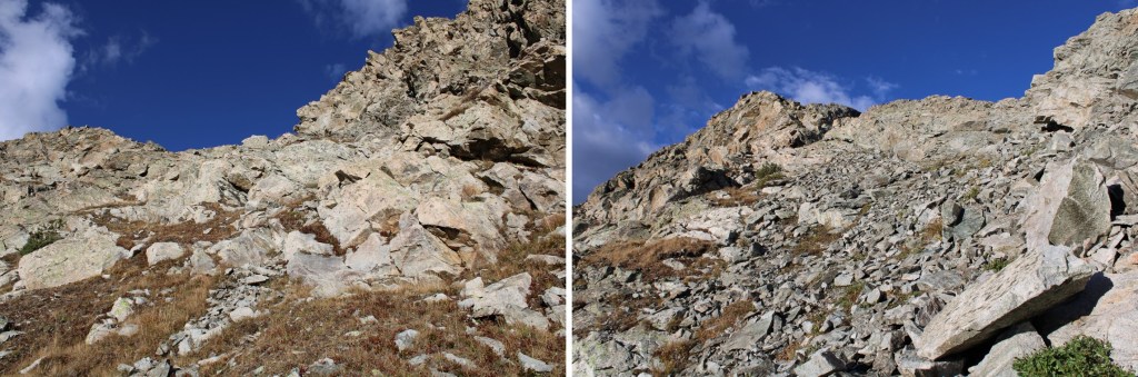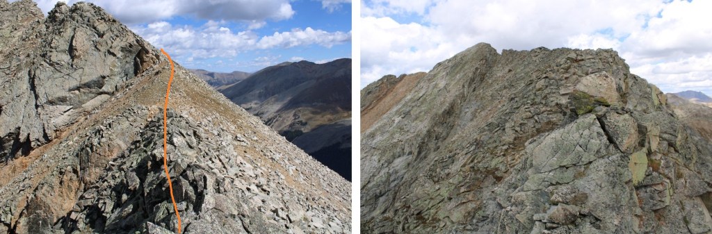 As I said before, this is a class 3 and 4 ridge.  There are too many specific moves to illustrate here, as the climbing is consistent, so I’ll just show a few of the fun ones. While the rock looks solid, and mostly is, please be careful of the ones that look solid but roll. If you can’t go straight up the rocks, look for game trails to the left.  Nothing should feel over class 4.  To put it in perspective, I consider difficult class 4 anytime I need to remove my DSLR camera from around my neck, or put my trekking pole away to climb.  I didn’t have to do either of those things on this ridge, but it was the most difficult climbing of the day.