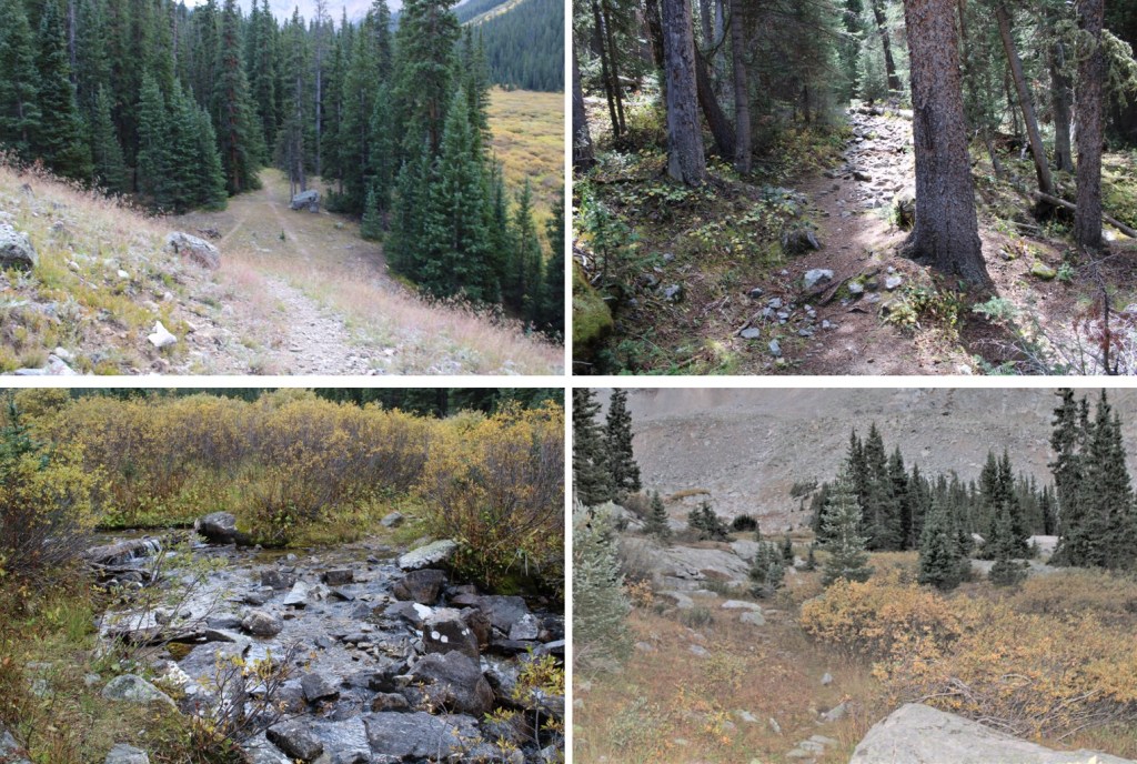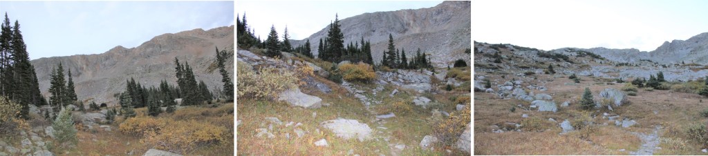 I followed this trail south for 3 miles from where I parked, through pine trees, willows, across streams, and eventually to treeline.