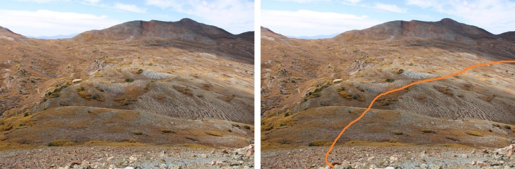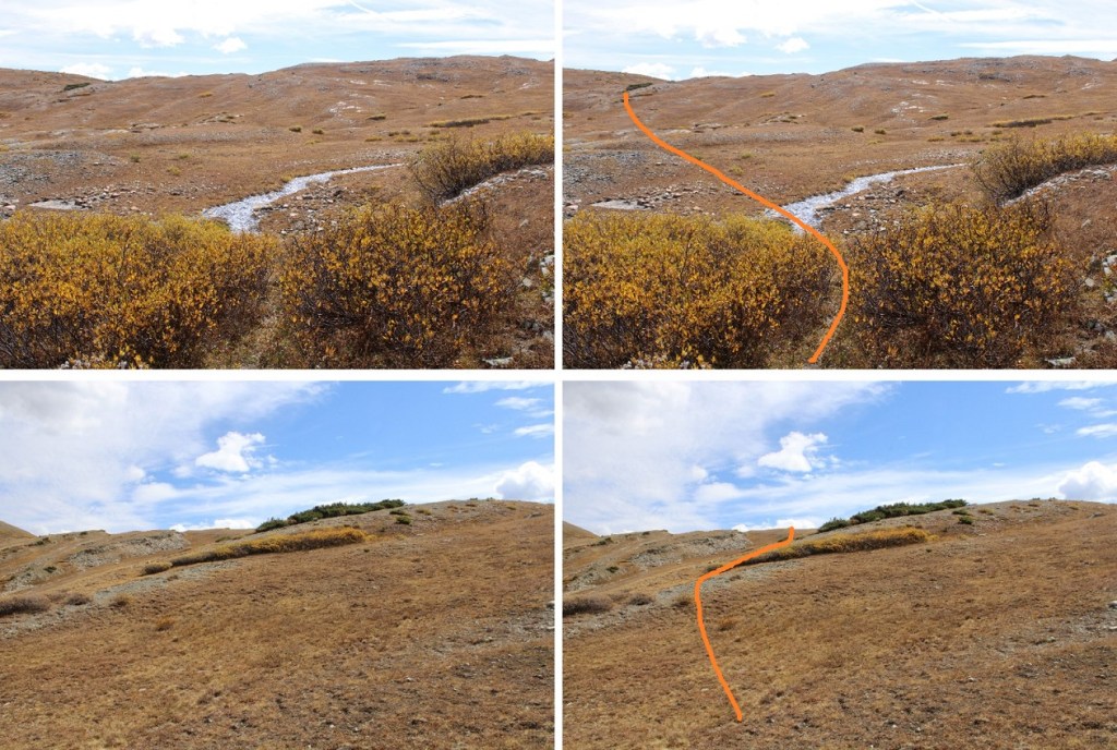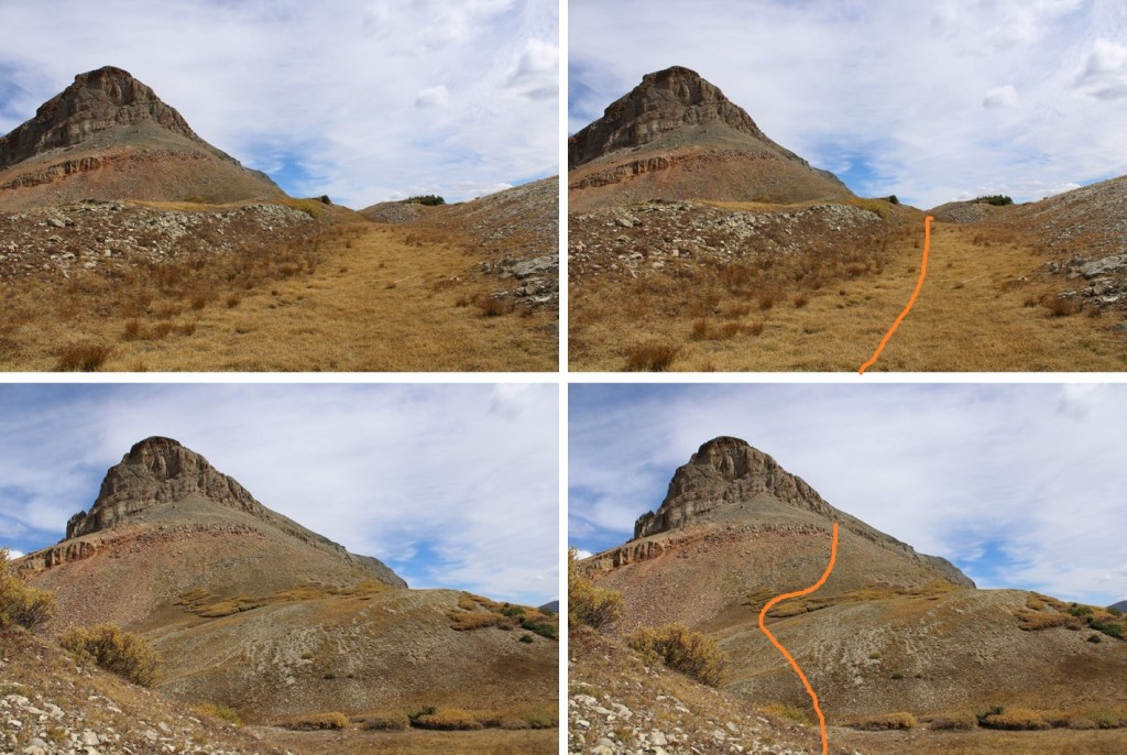There are some faint game trails here, but they aren’t really needed, as long as you’re heading for the base of the mountain