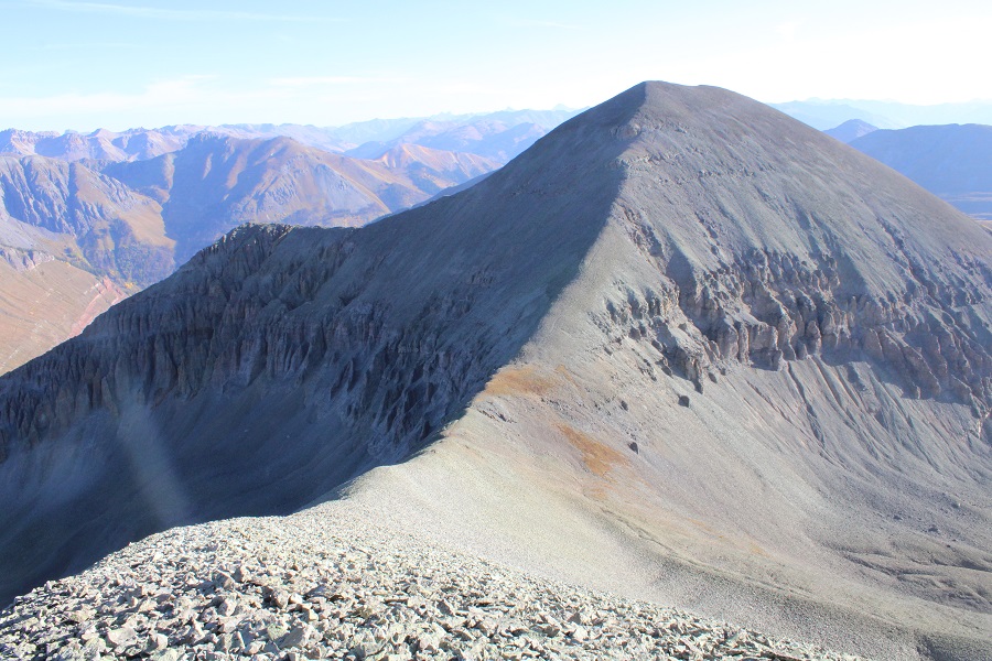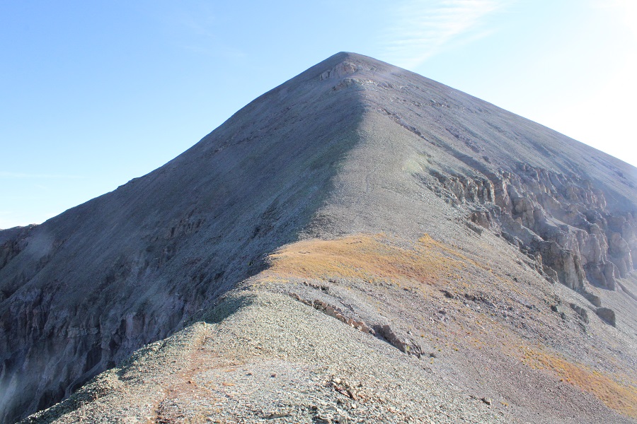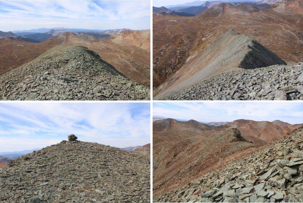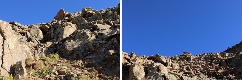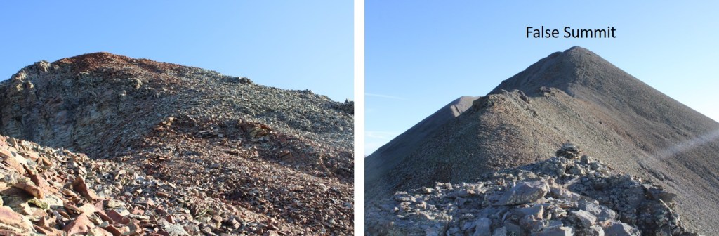 Once on the ridge, I followed it northeast, staying on the ridge. There’s a false summit here. I kept my spikes on, but they were overkill. The rock here was talus, and annoying, but firm.