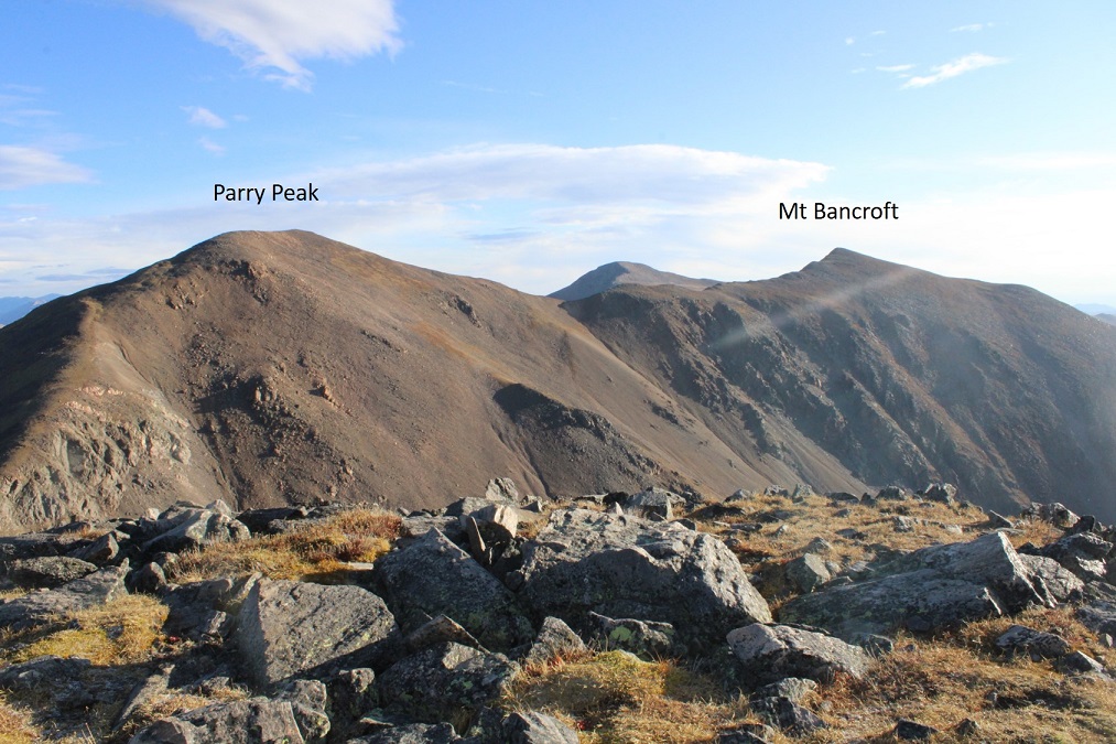 From Mt Bancroft I turned and looked west. It was a simple ridge hike to both Parry Peak and Mt Eva.